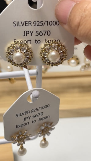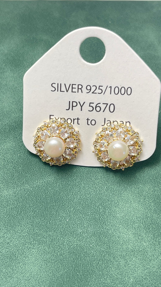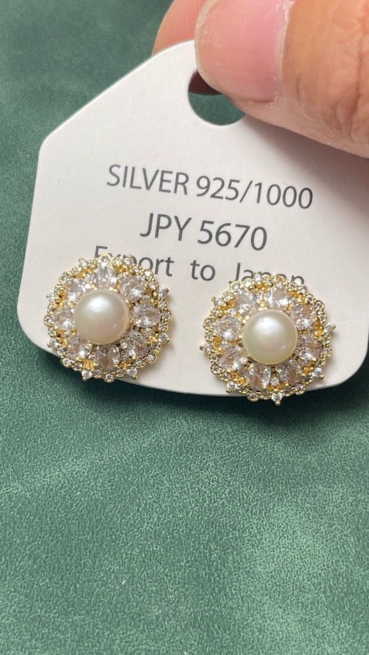 Zircon Sun Flower real pearls earrings